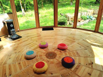 🌿 Accueil des stages et proposition d'hébergement en dortoir. Yourte Hélicoïdale est un logement énergétique proposant un double vortex cosmo-tellurique grâce à sa toiture en ellipse.