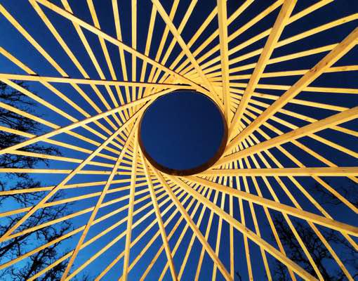 🌿 Cette cabane en bois de 38m2, avec son toit Mandala, son Dôme de lumière le jour et la vue du ciel étoilé la nuit.